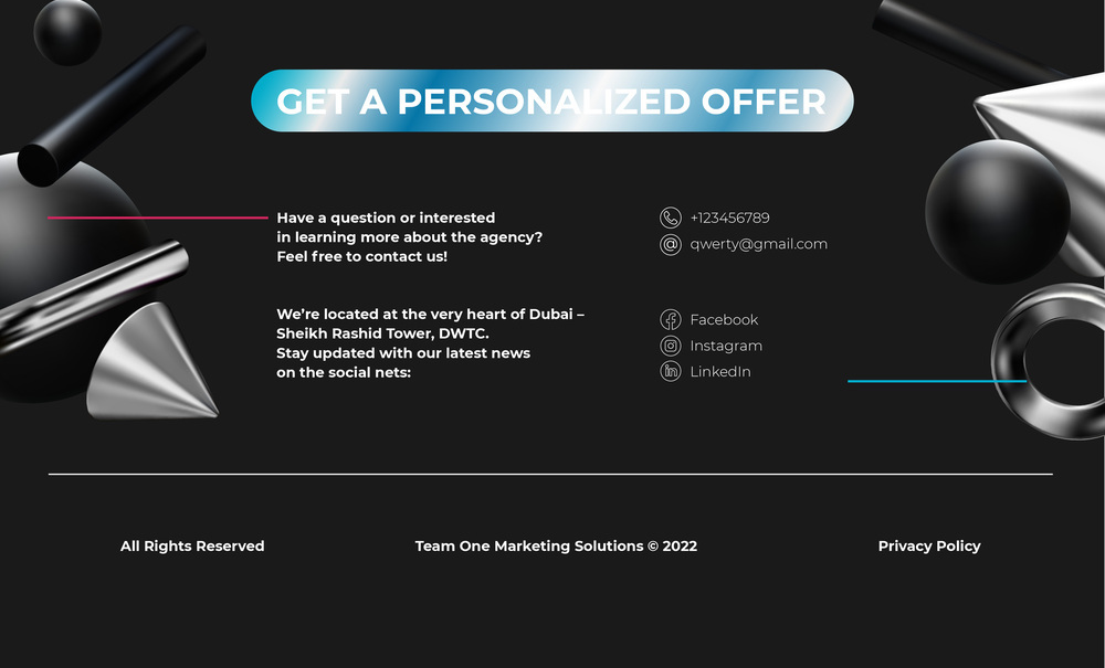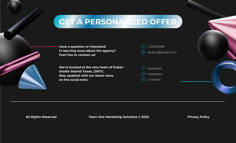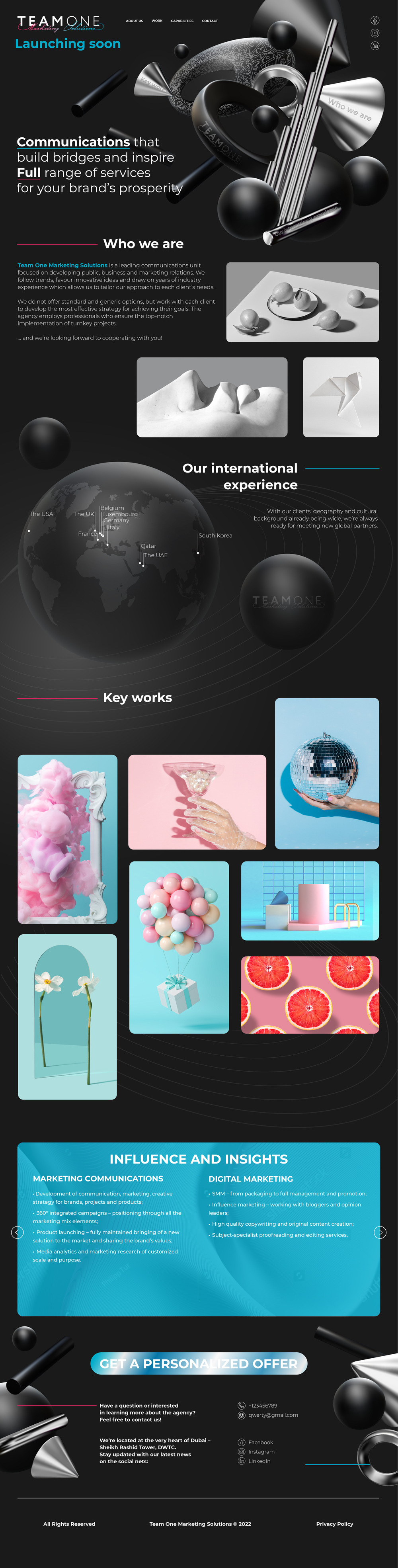 Team One Marketing Solution is a leading communications agency focused on developing public, business and marketing relations. We follow trends, favour innovative ideas and draw on years of industry experience, which allows us to tailor our approach to each client’s needs.
